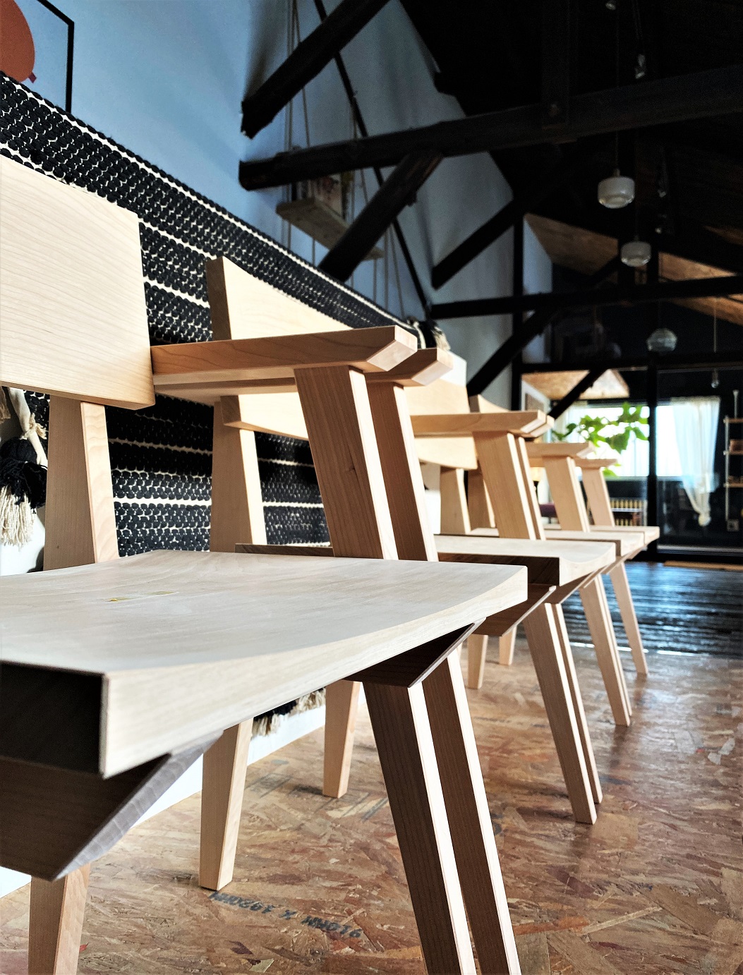 ブログでご紹介してきたフレーム加工の後、背と座はコツコツと手加工でカーブ状に削りだしています。