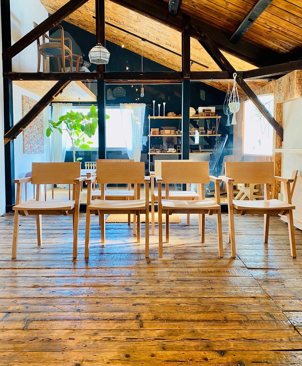 仕上がり後お客様確認を経て、テーブルと無垢のアームチェアをセットで先行納品しました。
