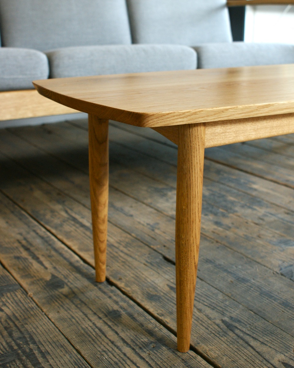 オーク総無垢で仕上げたローテーブル。 手仕事の伝わるデティールと無垢の温かみを感じていただけるフォルムの仕上がりです。