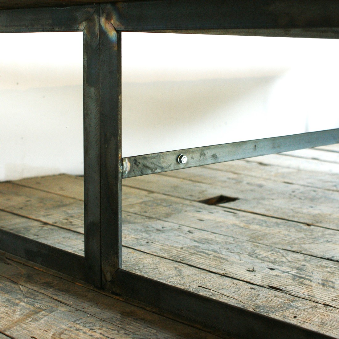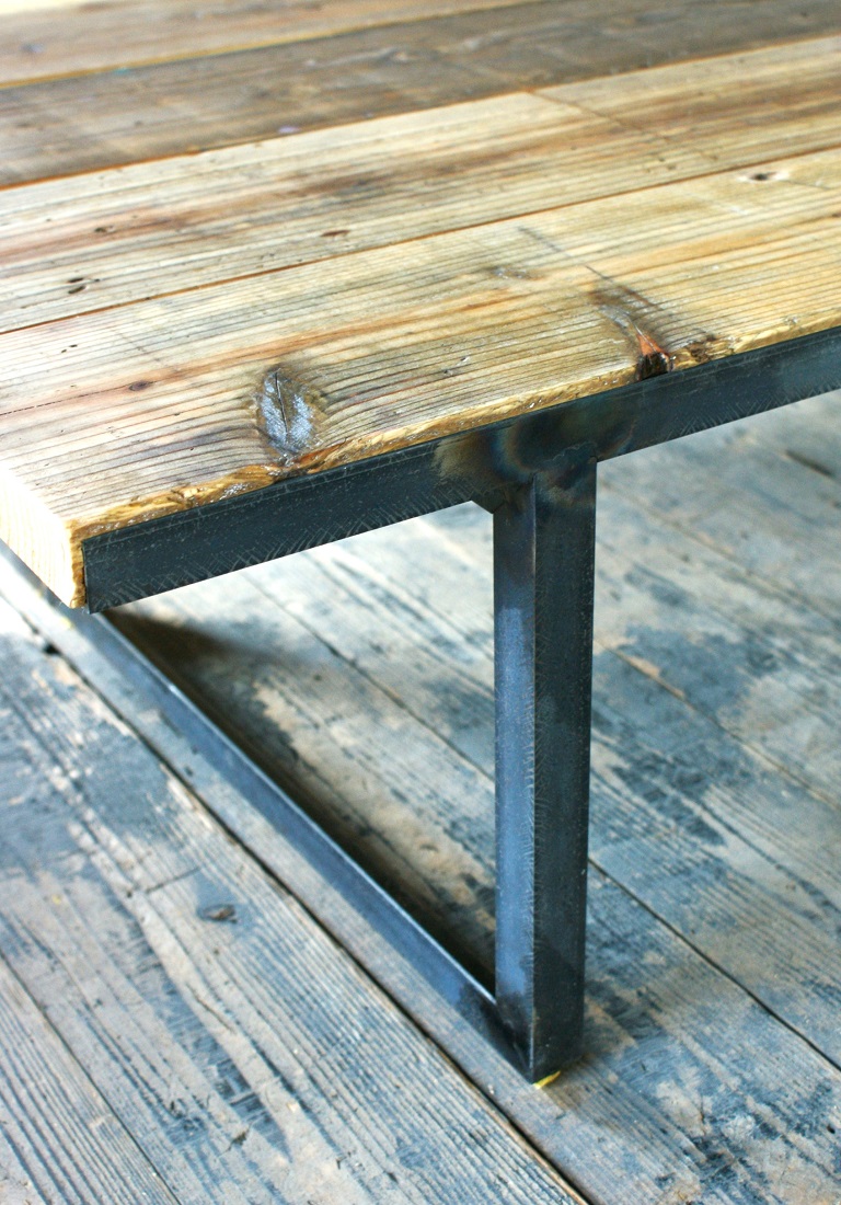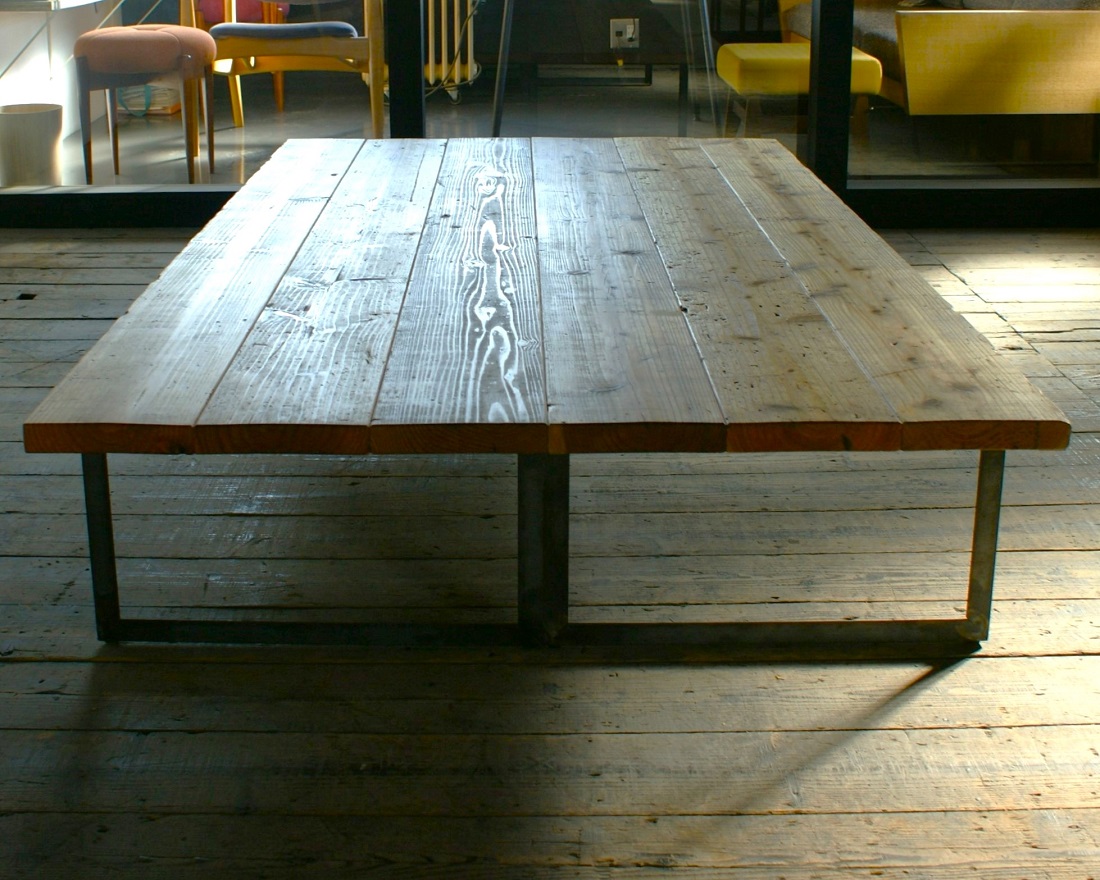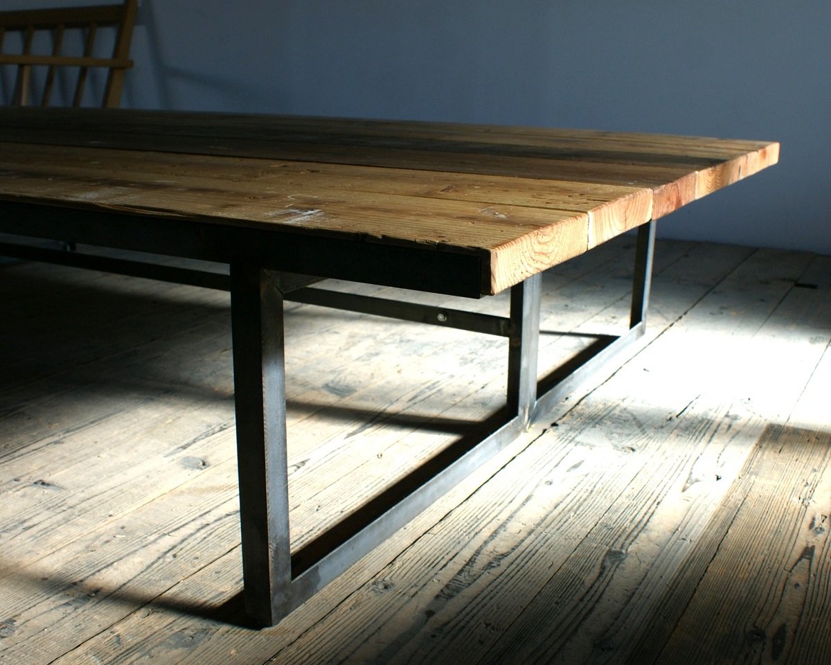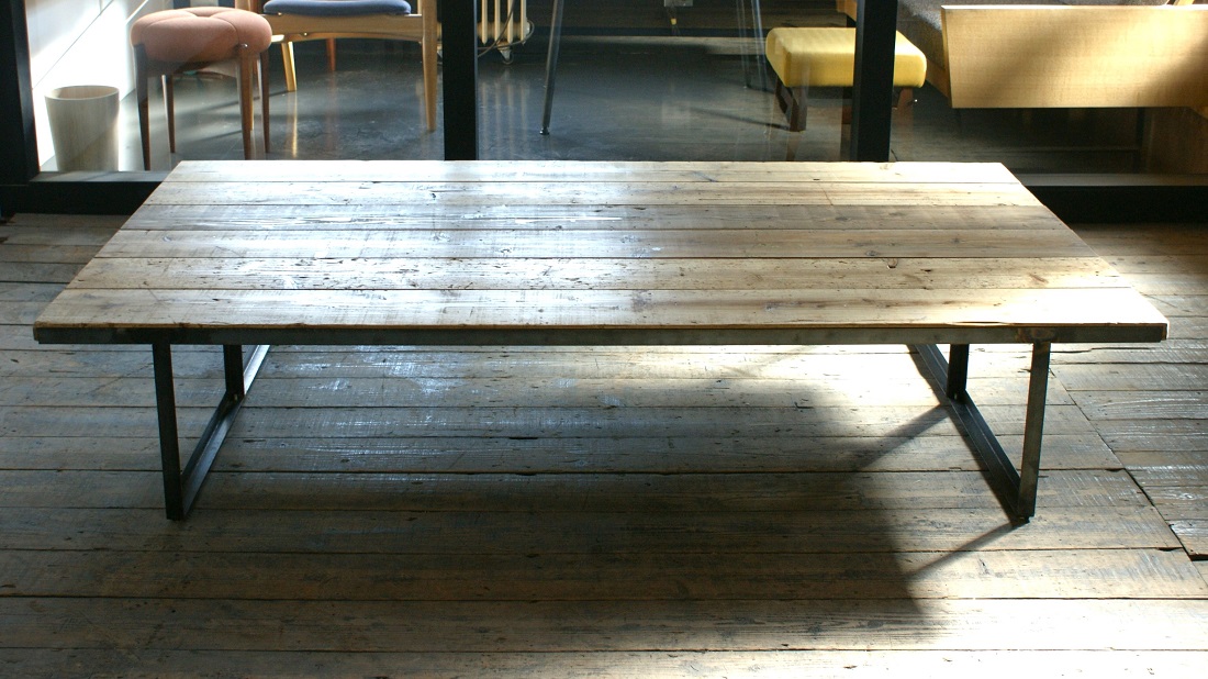 古材とアイアン、素材それぞれの表情が際立つオーダーローテーブル。 ご希望のサイズ、仕様で製作しお届けしました。 空間に存在感を存分に感じていただけるインダストリアルな仕上がりです。