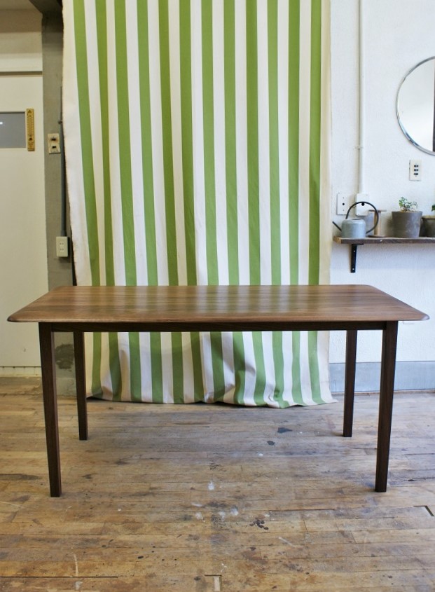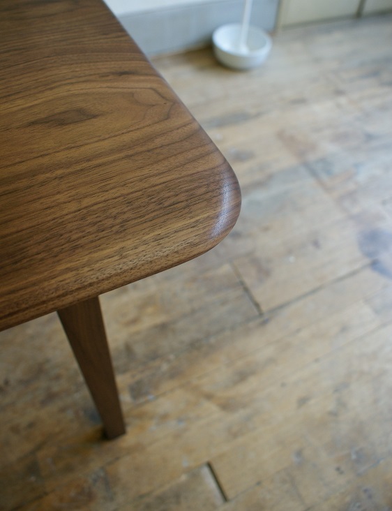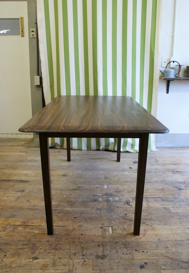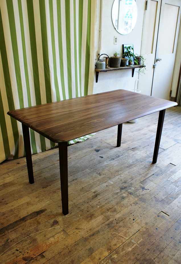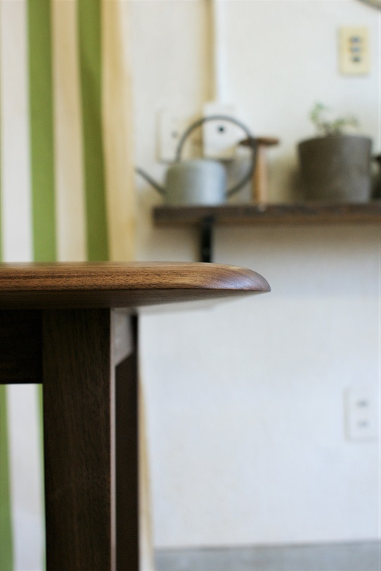お客様設計・デザインのオーダーテーブル。 細部にまで意匠性を感じるデティールデザイン。 ウオルナットで仕上げたこだわりのテーブルです。