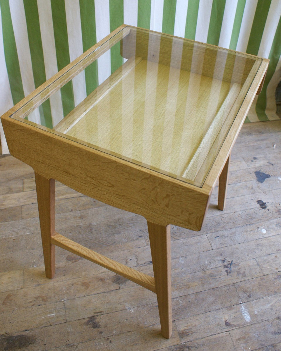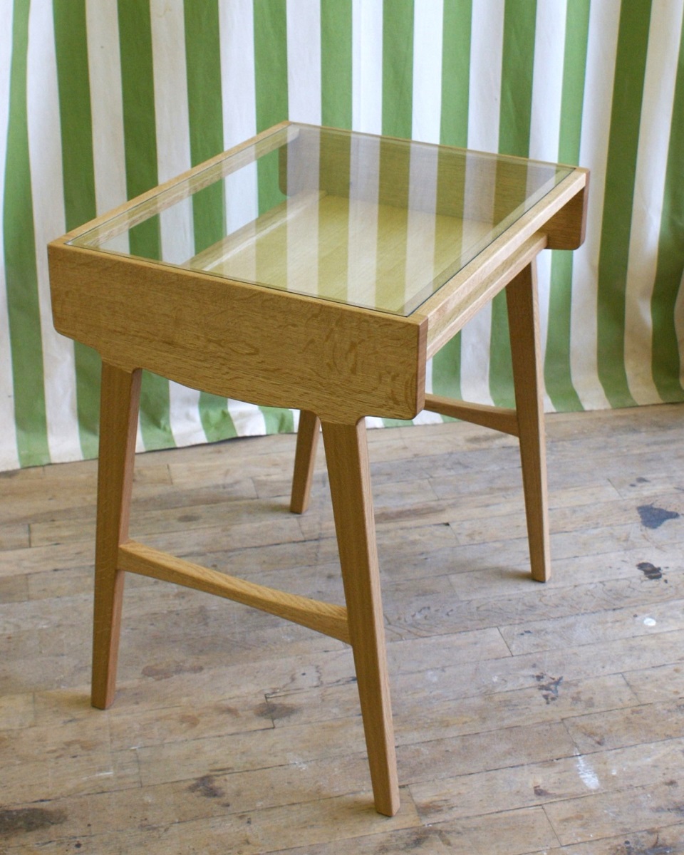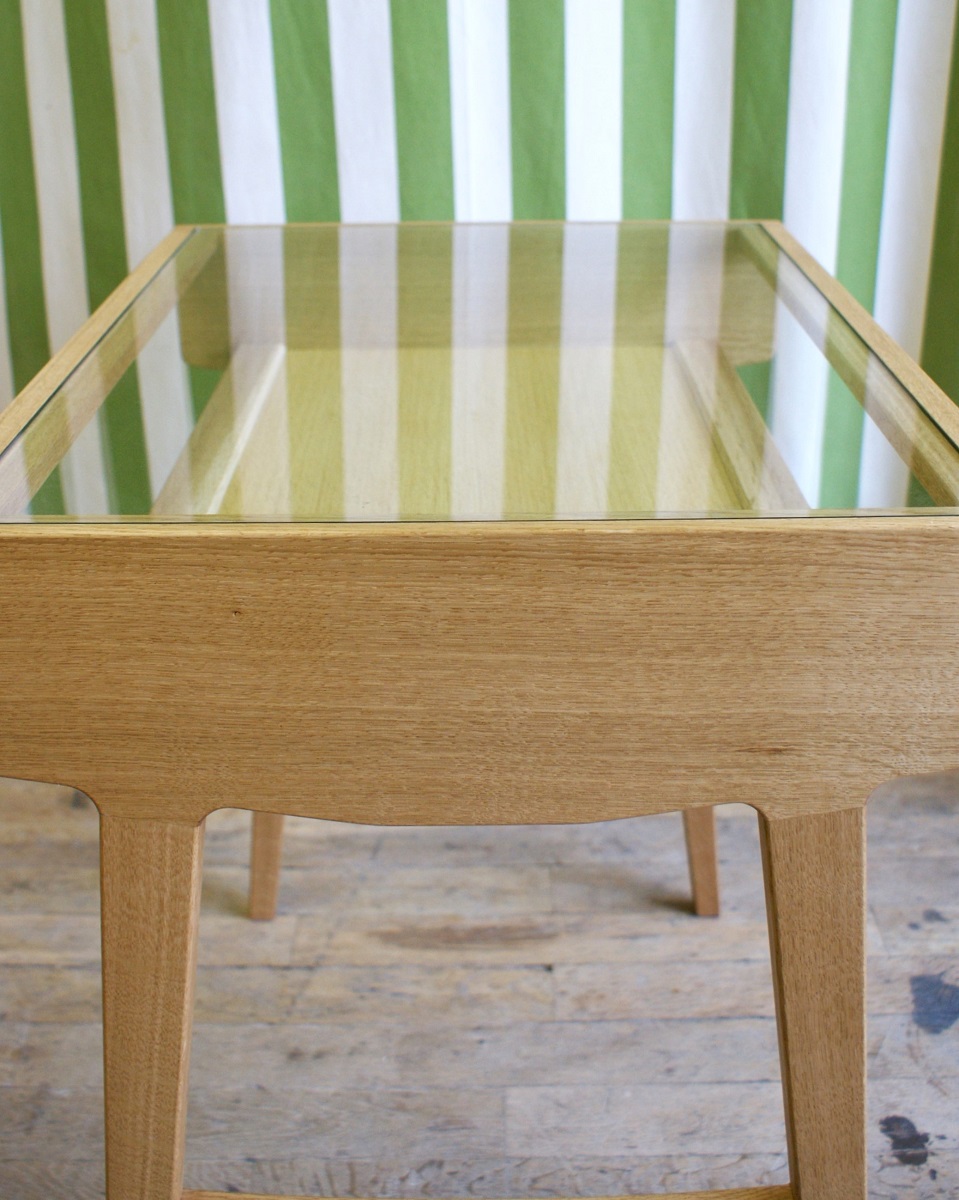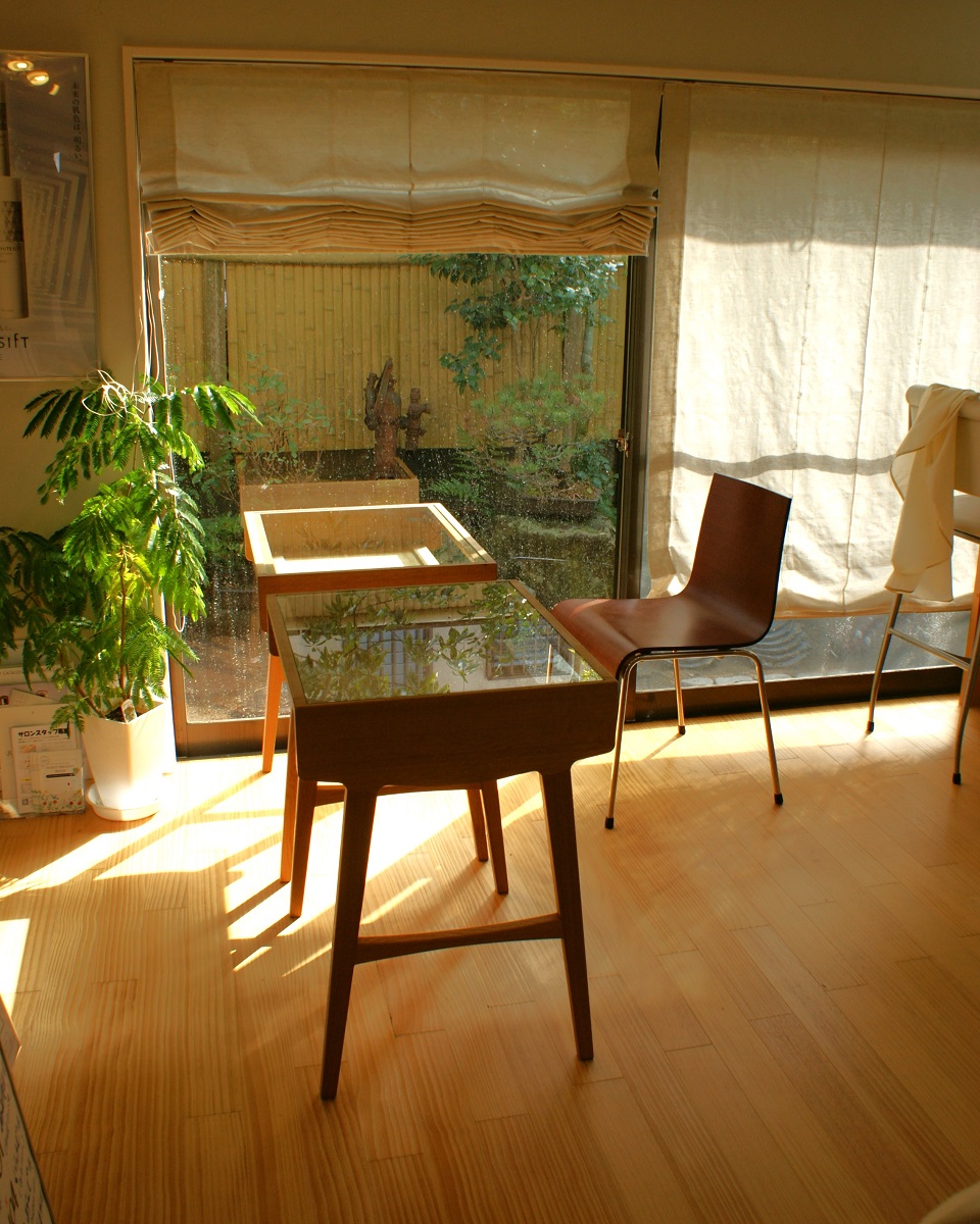 接客時に商材の確認がしやすいガラストップ仕様。 サイズや仕様などオーナー様のご要望に合わせたオーダーならではのテーブルです。