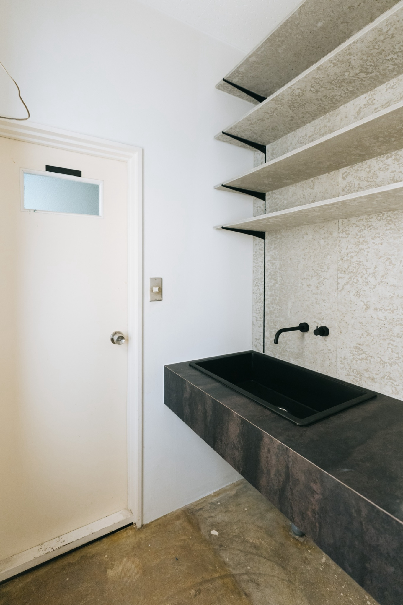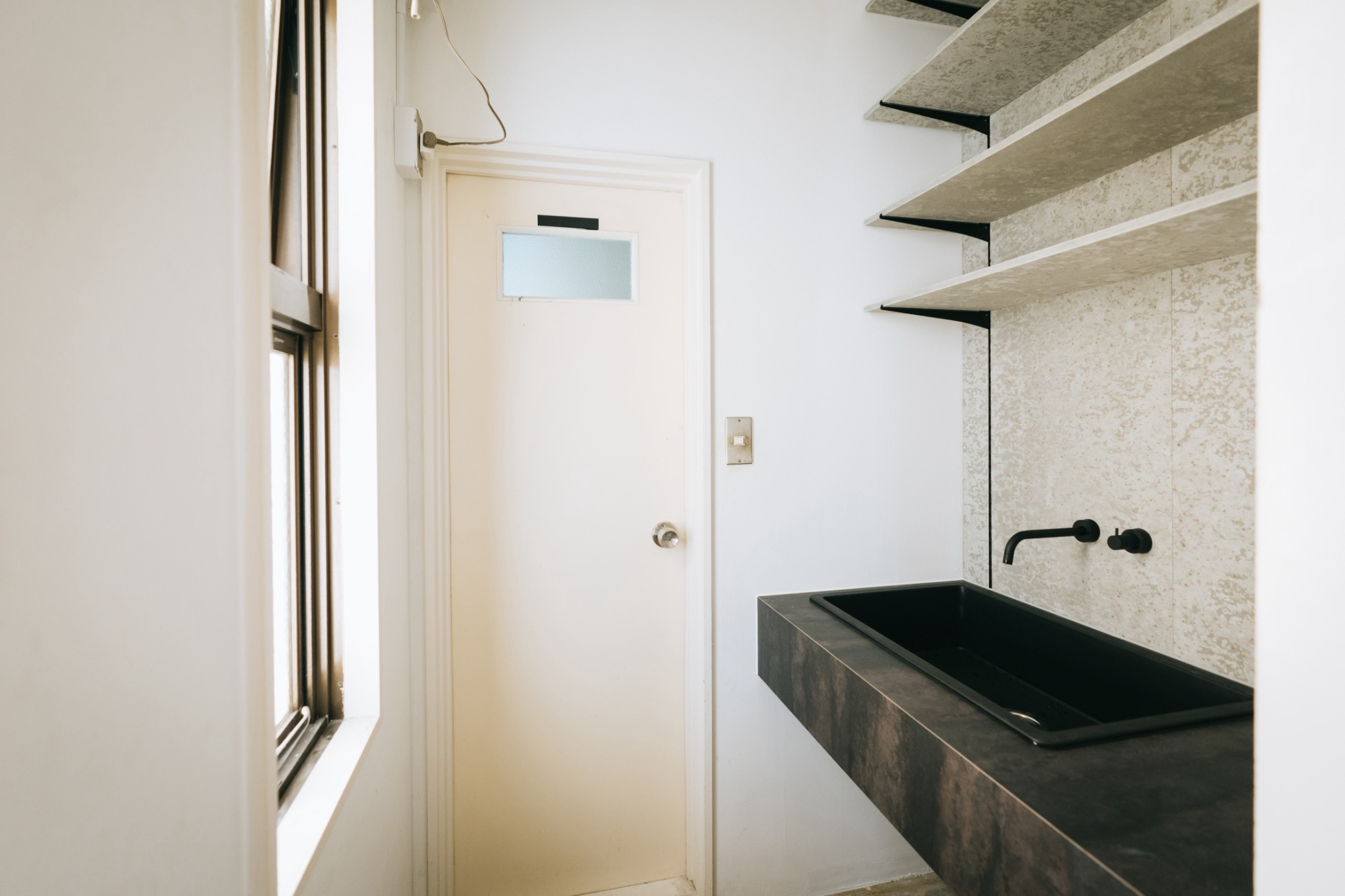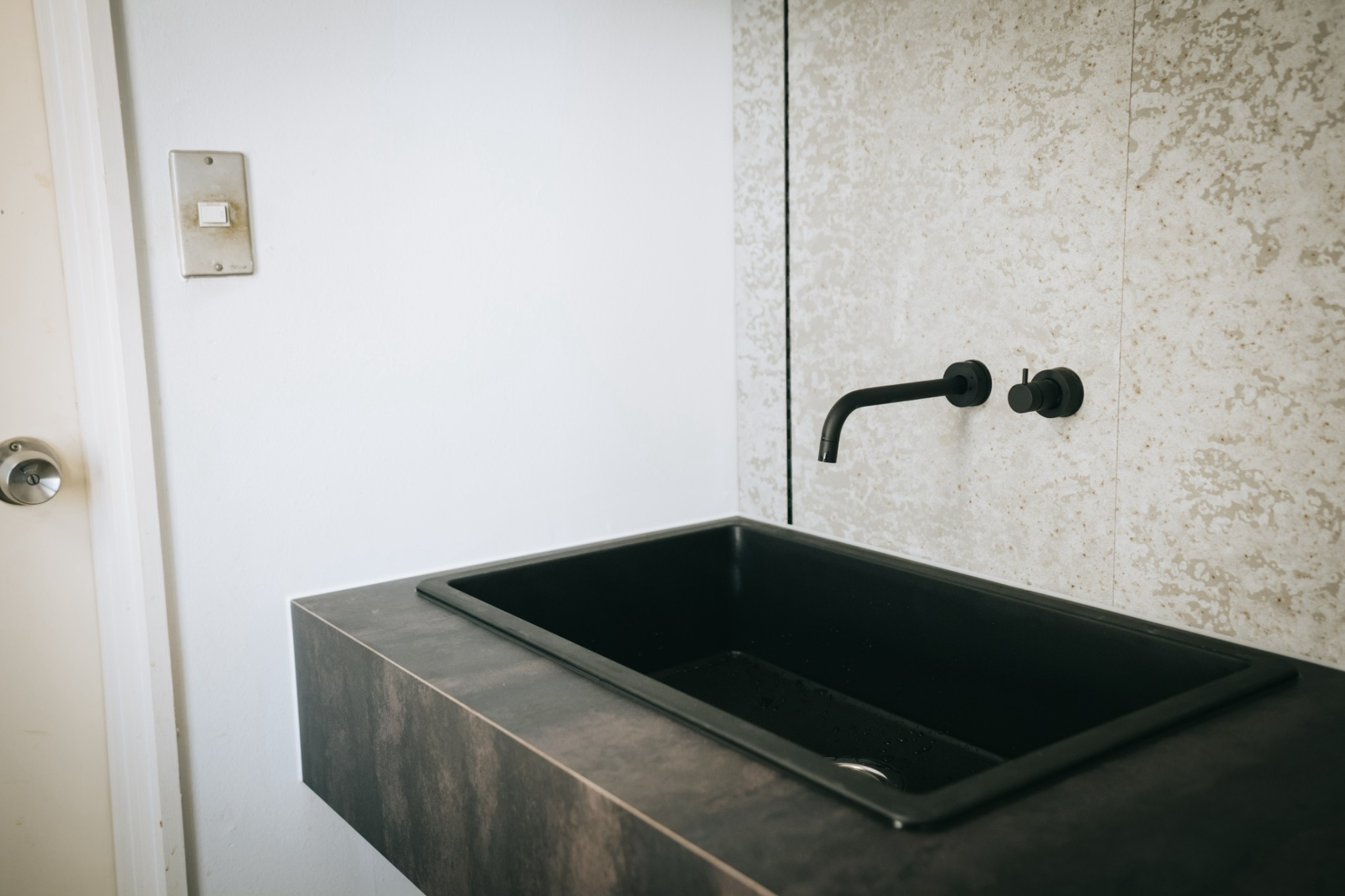 空間にはご要望であった「無骨さ」というキーワードを軸に、セメントの質感を活かした壁材を採用。