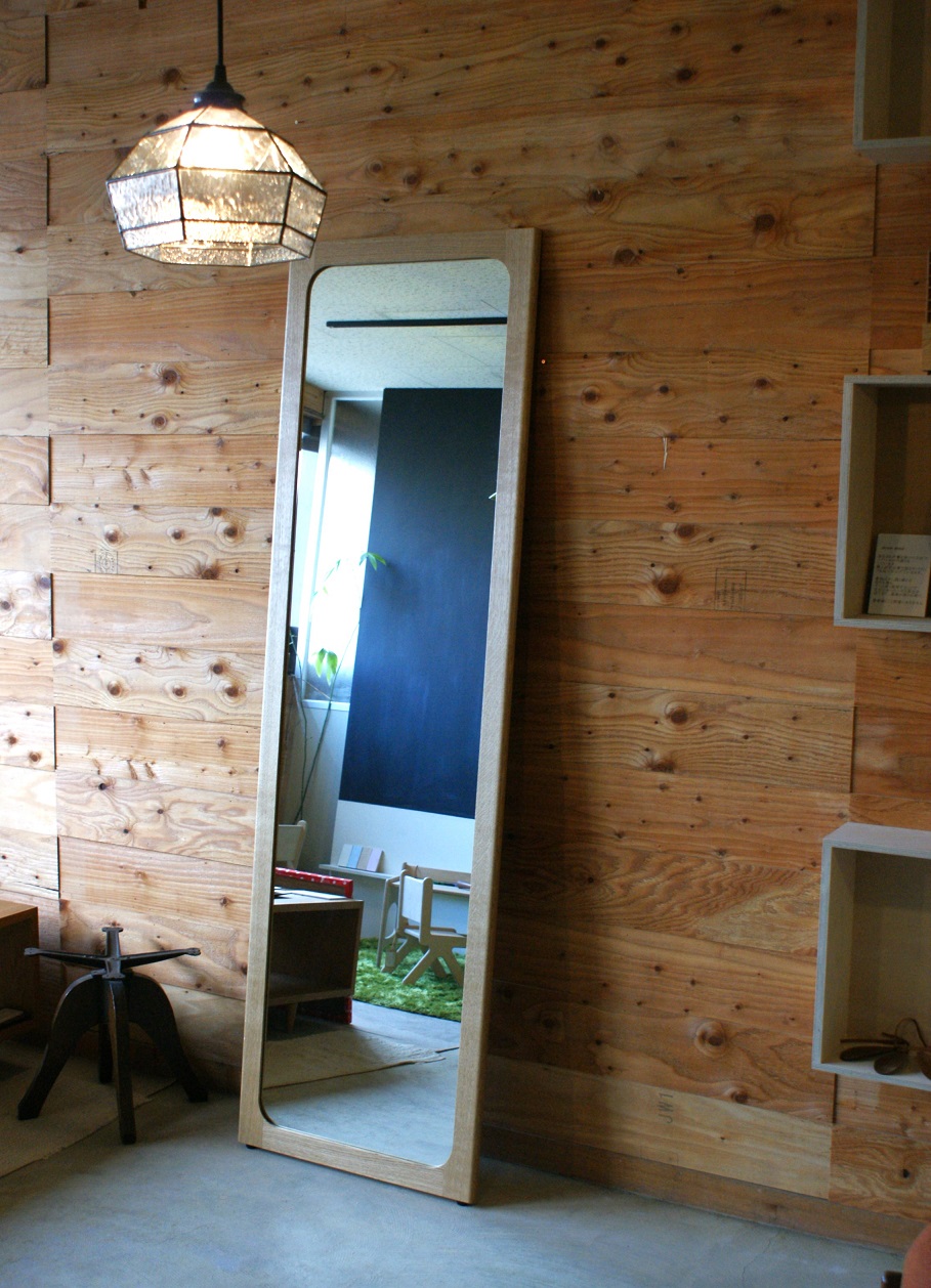 映る美しさを引き立てる、オーク無垢の姿見フレーム
