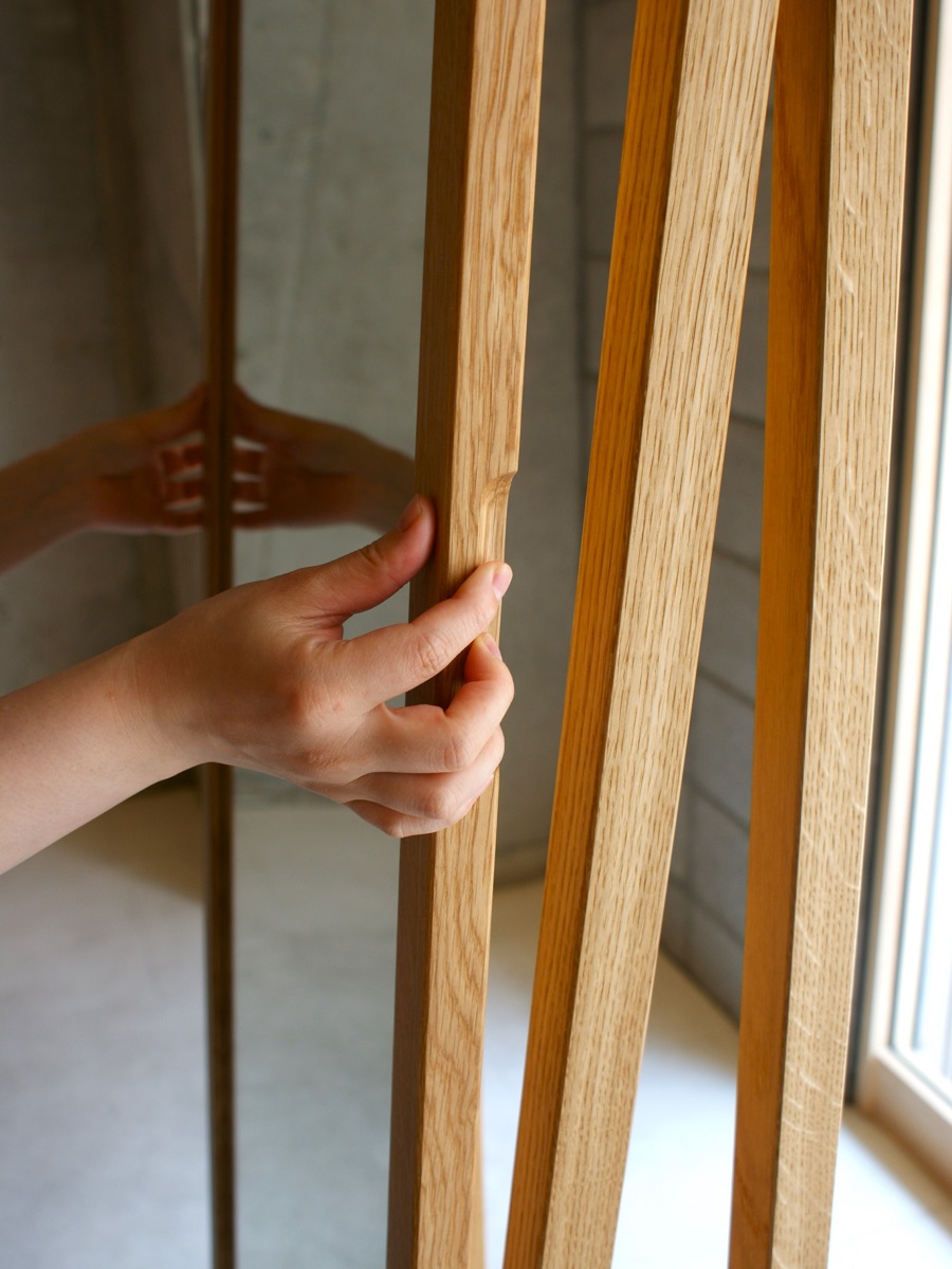 フレームにはオークの無垢材を使用し、職人の手で一つひとつ丁寧に組み上げています。