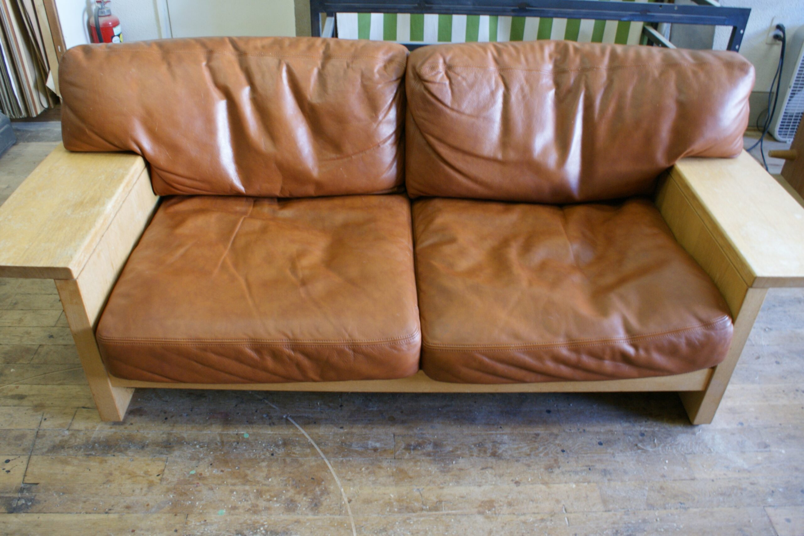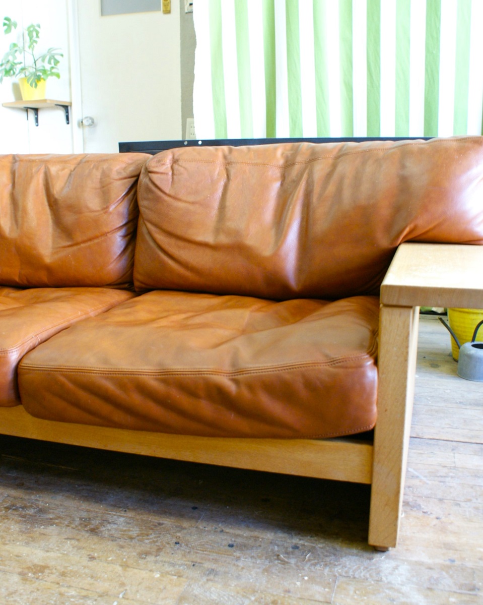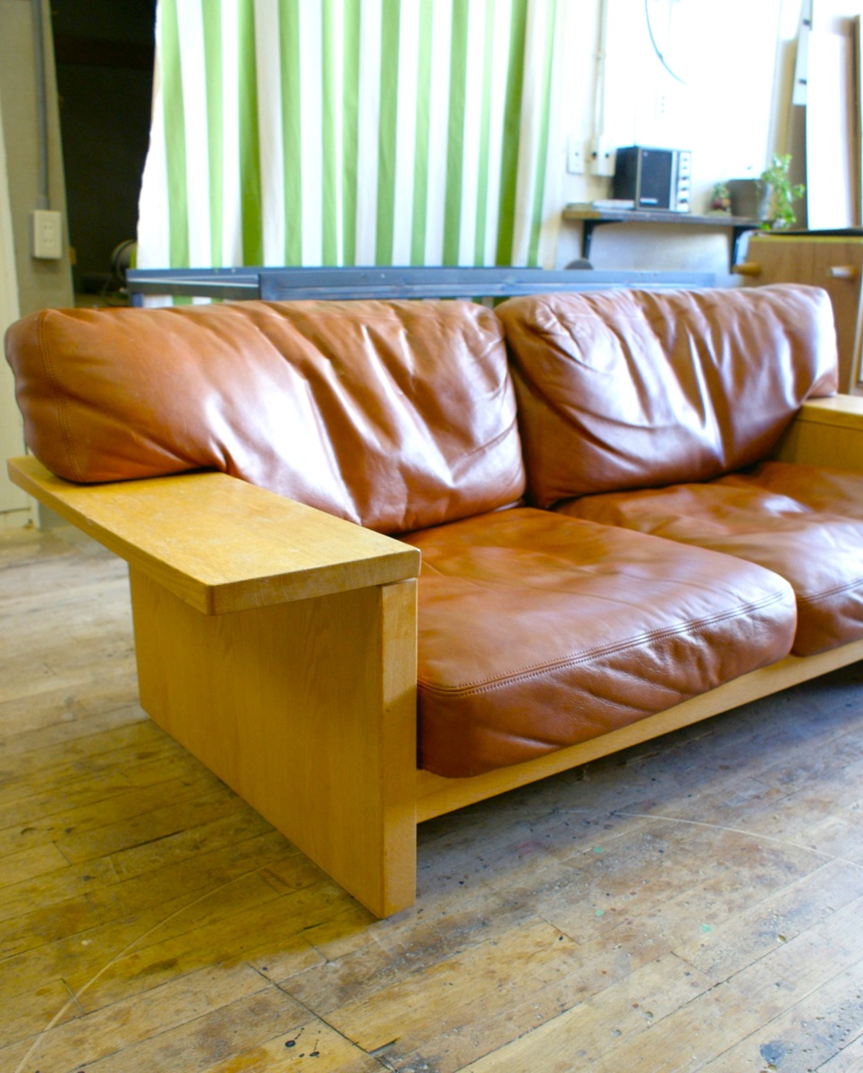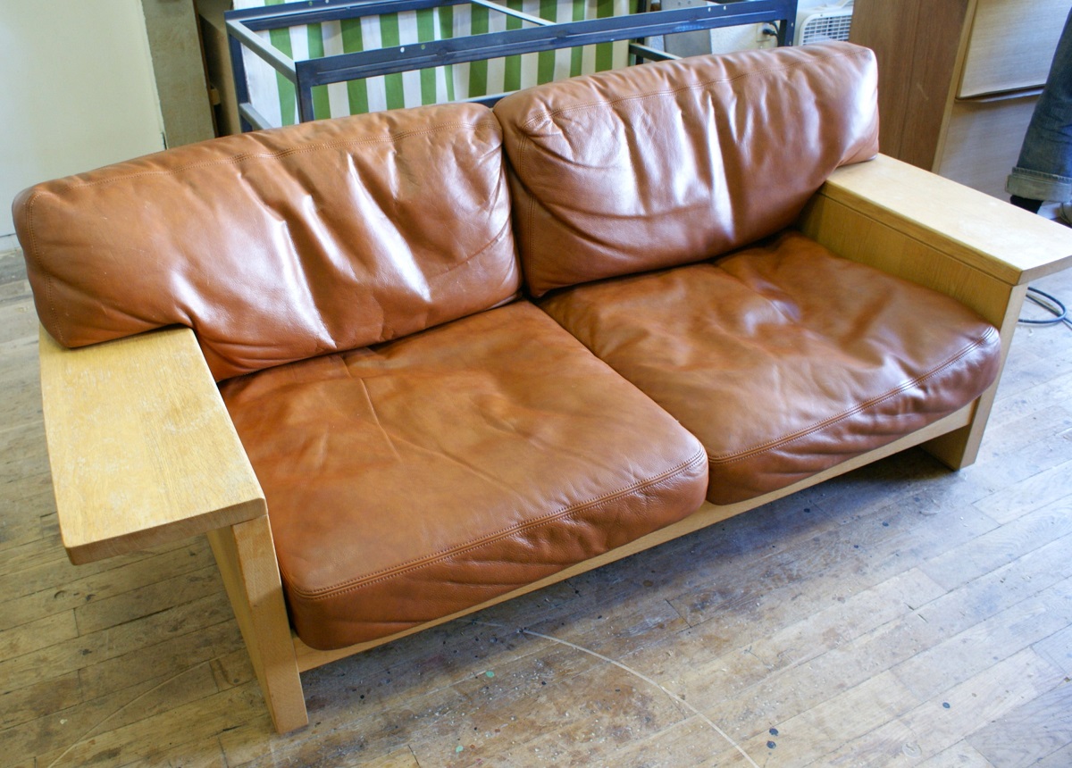 レザーソファの使用による「へたり」復元と、フレームオーバーホールのご依頼いただきました。