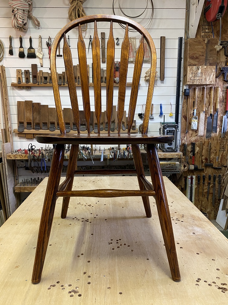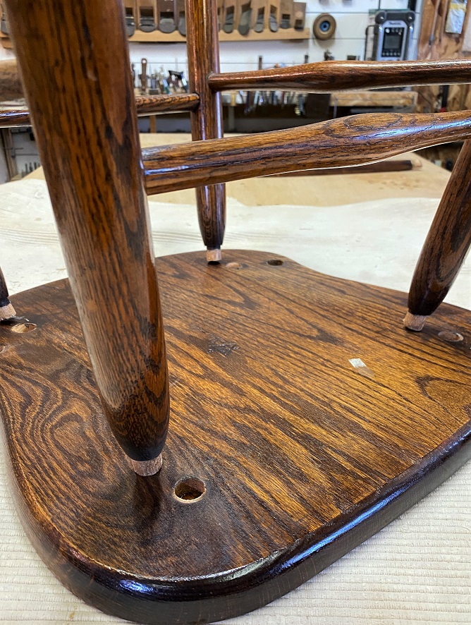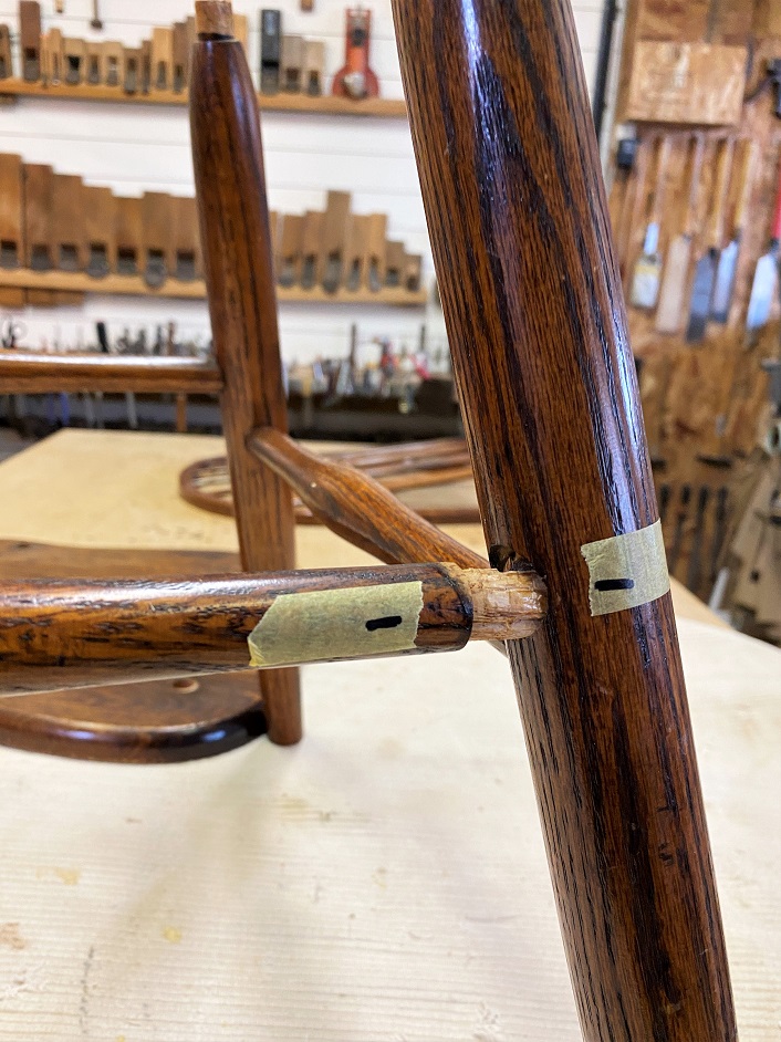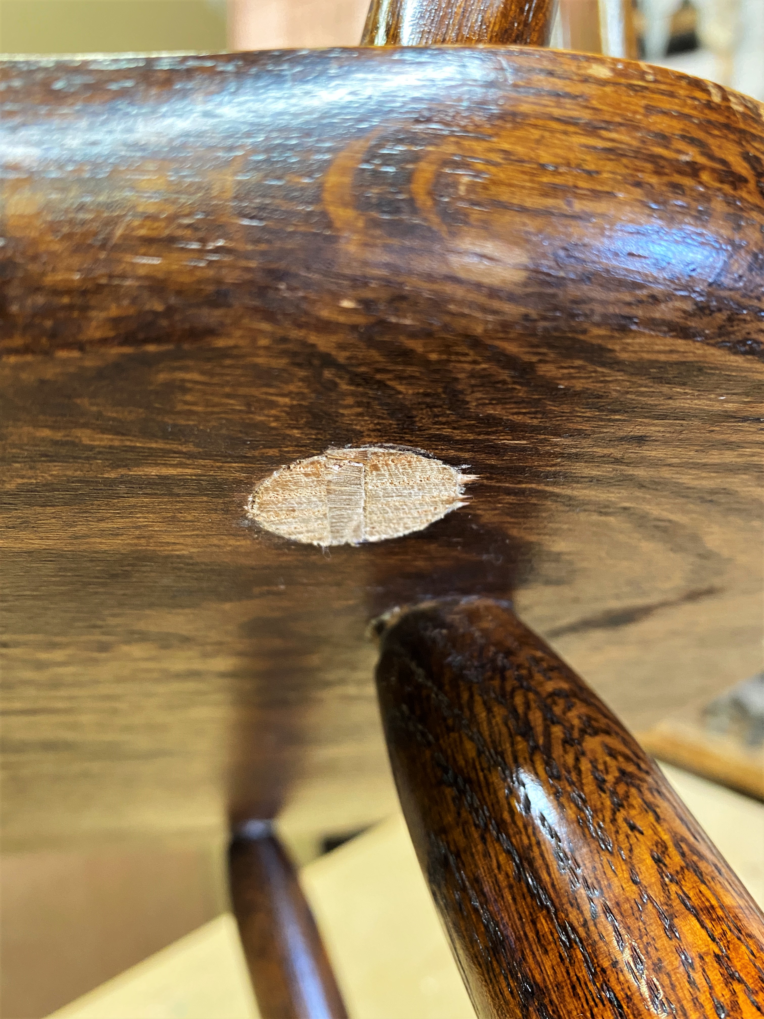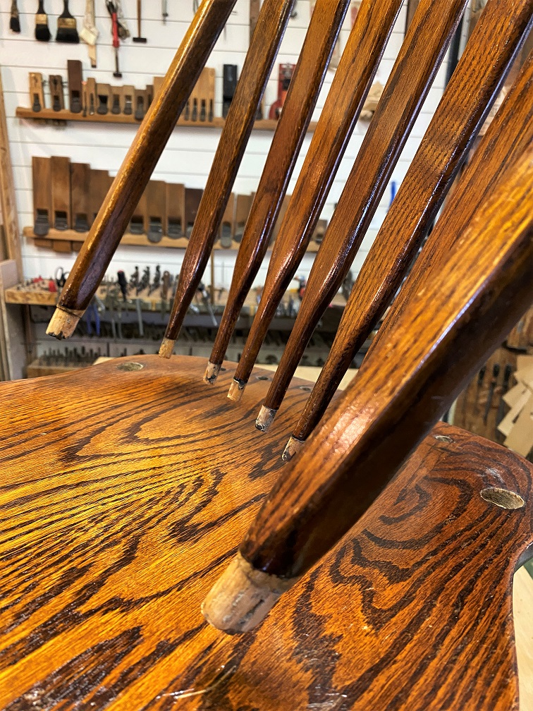 背もたれメインの左右接合箇所のクサビも打ち直し強度を戻します。